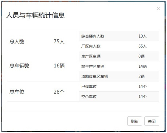 打开人员车辆统计表,表格会显示人员、车辆的汇总信息