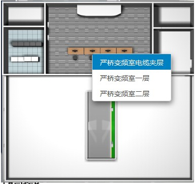 在大于一层的建筑物放大至楼层内部结构显示出来后,可右键操作进行楼层选择,三层区域,需要查看其他两层,通过右键选择层区域,查看相应的层区域,例如严桥变频室